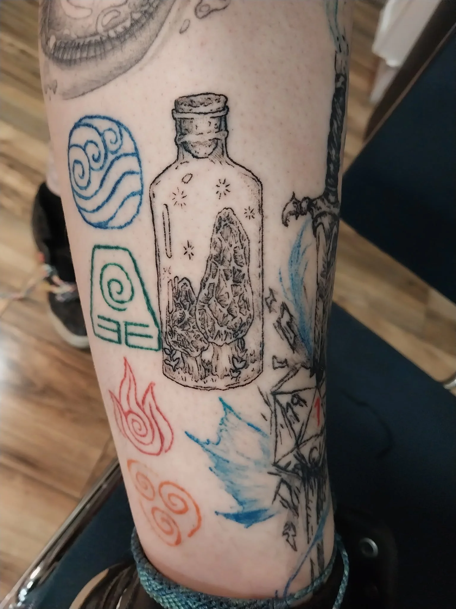 Caff is one of the many talented artists located at Direwolf Tattoo Studio. They love to collaborate on custom pieces with their clients while being mindful of individuals' cultural contexts. Cultivating a safe community for people of all ethnicities, identities, and experiences is something they aspire to.